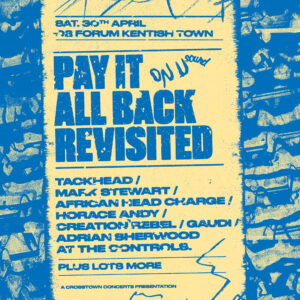 And what a line-up was brought together to celebrate mixmaster general (and birthday boy) Adrian Sherwood’s iconic dub/funk/post-punk/industrial indie label (motto: ‘disturbing the comfortable, comforting the disturbed’): Creation Rebel, African Head Charge, Tackhead and Mark Stewart & The Maffia.